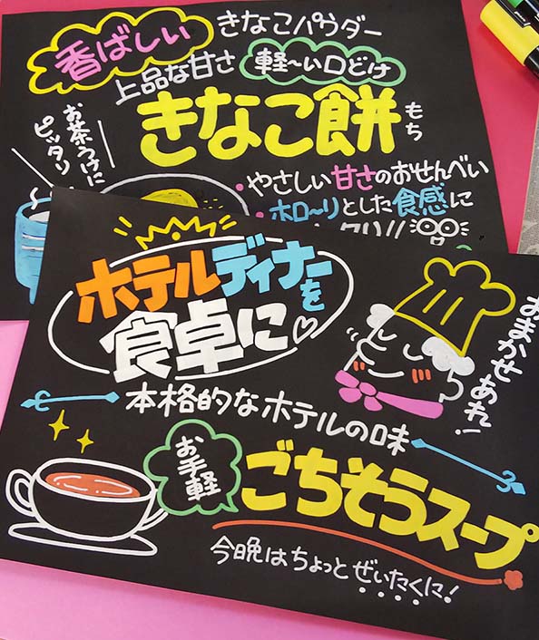 POP、看板、手書き文字💛 Posted on 2023年1月22日2023年6月10日 by popkaneko 最初のデザインの仕事は手書きのPOPから始まったのでした…小さい値札から大きめ看板まで。 時にはチラシや本にも、手描き文字を描きました。 パソコンで作るのと違い、これは個性(味)がそのまま出ちゃいます… あーでもないこーでもないと悩みながら 出来上がった時の嬉しさは格別です。 ↓クリックすると拡大します。 節分POP 電動自転車POP お店掲載POP 花粉症POP スイートコーンPOP ごちそうスープPOP 五目中華POP ネットショップチラシ 警備員募集チラシ 手書き風チラシ 看板POP DSC_1681 レシピ本の手書き文字